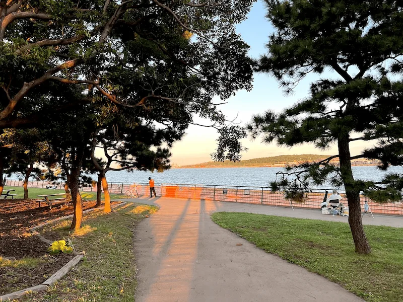 なんとか歩くこと十数分、公園が見えてきた! 地図によると暁ふ頭公園というらしい。 公園の先には海が広がっており、ついに端までたどり着いたのかと嬉しくなりなんとなく体調も良くなってきた。 公園に入ると、自転車から降りて海を眺めている人がいる。よく見ると背中に「放課後クライマックスガールズ」とプリントされていて いいTシャツ着てんじゃないかよ、ラブライブ!だろ? ……とは流石に言わなかったけど、こんな場所にもオタクっているんだなぁ、いや、そりゃいるか、ははは……と脱力してそれが妙に心地よかった。