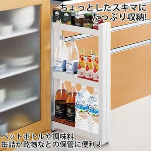 冷蔵庫の横にわずかな隙間があってデッドスペースになっていたが、この超細いワゴンを差し込んで 水を置いておくとスペースが活用できてとても良かった。