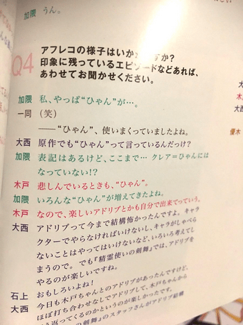 これだけでも他のアニメでは見られない特色なのだが、さらに「ひゃん」には面白いエピソードがある。 Blu-ray第1巻特典のブックレットのインタビューでこのようなやりとりが。
