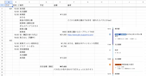いざ旅に行くとなると準備が色々必要だ。 私は旅行慣れしておらず過去の旅行も同行者に全部お任せしていた。 しかし今回は自分が行きたいと言い出したからには、と日程や予算を組んだ。 だいたいの日程と場所と金額を入れた「遠足のしおり」のようなシートを1枚作っておくだけで情報が整理されて大変よかった1。