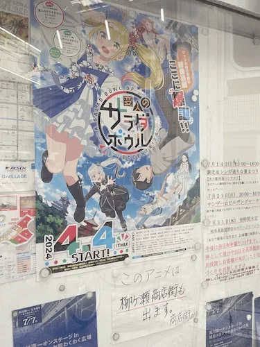 そしてもちろん、アニメ『変人のサラダボウル』に出てきた場所だとわかると嬉しさは倍増だ。 地元側からアニメ側への干渉があるのも嬉しい。 例として、柳ヶ瀬商店街の掲示板や岐阜タンメン岐阜本店にはアニメのポスターが張り出されていた。