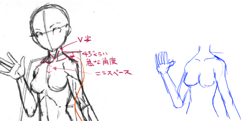 - 肩と腕の境界線は斜めにビシっと一本いれるとわかりやすい