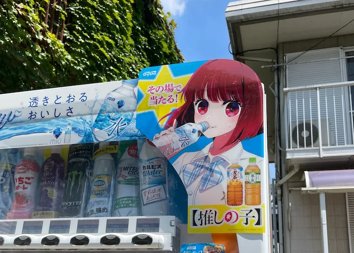 少し前、アニメ『【推しの子】』とダイドードリンコのコラボキャンペーンが始まった。 全国のダイドーの自販機に推しの子のパネルがつけられ、QRコードでキャンペーンに応募できるというもので、 特筆すべきはそのパネルに推しの子の萌えキャラクター有馬かなちゃんがプリントされていたことだ。かわいい。