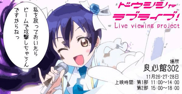学祭で教室を借りライブBlu-rayの上映をやった。 大学の教室のスクリーンにアニメ系イベントの映像を流すって光景がまず面白すぎて(こんなことしていいんだ…)と感動した。そんな中で光る棒を振り回してはしゃぐ部員たち。 何も知らない人からみたらあまりに面白い状況である。時々アニメのライブイベントとは全く縁のなさそうな人がやってきては動物園に来た的な感じで笑いながら眺めている様子が観測された。