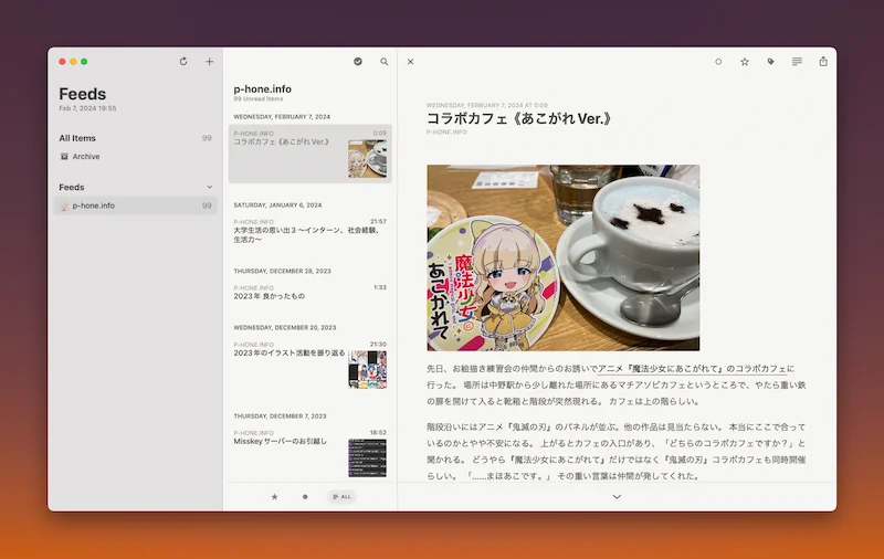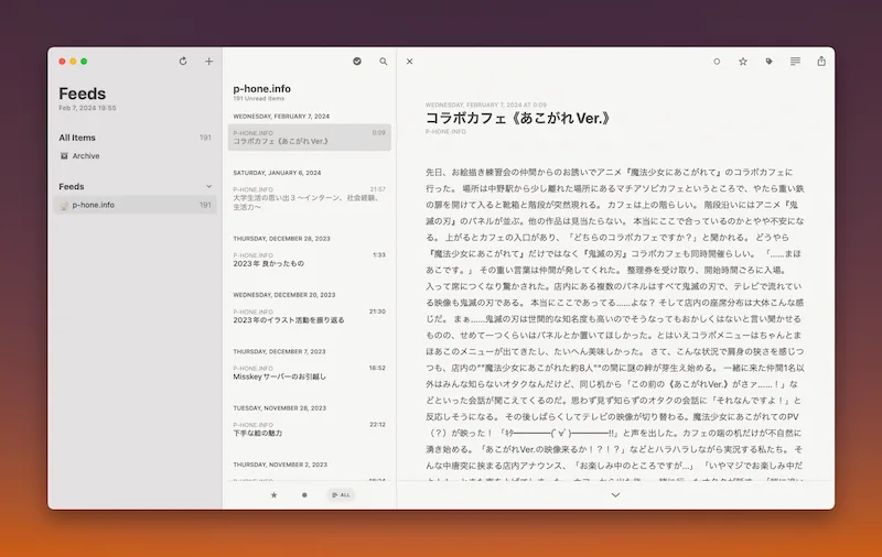 AstroでRSSフィードを出すには専用の対応が必要だ。 しかし、MarkdownをHTMLに変換する作業を自前でカスタマイズできるため、本文をちゃんとしたHTMLで出力できるようになった。