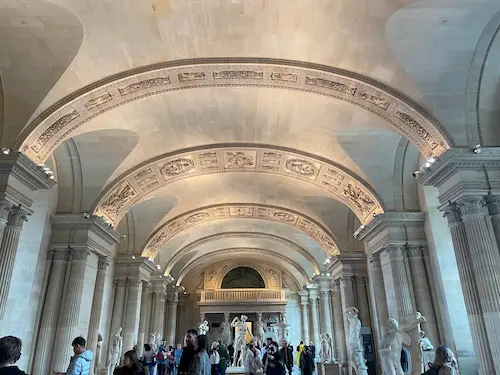 ルーヴル美術館はめっちゃ広くて一日中かけても全部は回りきれない量の作品がある。 ツアーで申し込んだのでガイドさんによる日本語解説つきで2時間ほど、有名作品をざっと見ていくという形だった。 このコースでは残念ながら『アサシンズプライド』等の展示を見かけることはなくて(あれ〜?100m級の大きさで飾ってあるってフォロワーさんは言ってたのにな、エッフェル塔の1/3の高さなら流石に遠目でも気づくはず…)と思ったりはしたが、それを抜きにしてもルーブル美術館の展示はすごかった。
