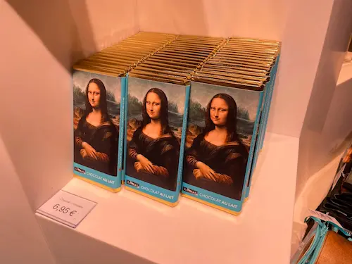 美術館には必ずショップが併設されていて、有名な作品がプリントされたグッズがたくさん売っていた。 たとえばモナリザパッケージのチョコレート!最近今期アニメのグッズとして『お隣の天使様ウェファーチョコ』を探し求める運動が発生したこともあり似たようなものを感じた。美術史に登場するような絵画たちと現代の萌え絵でも通ずるものはたくさんある。良い経験だった。