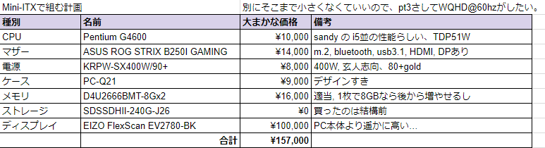 本体をできるだけ小さく、という条件からMini-ITXに絞られ、