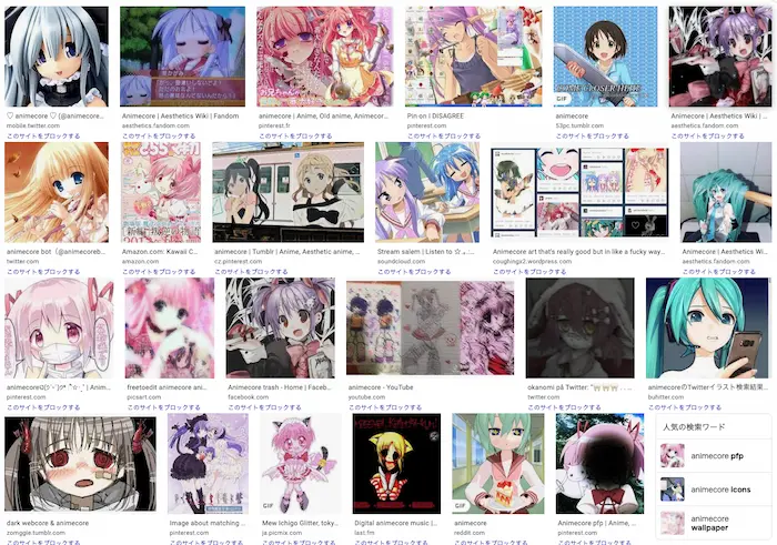 Google画像検索で "animecore" を検索した結果