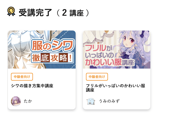 最近絵を描いてて、一番悩ましかったのが「服のしわの描き方がとにかくわからない!」だったので真っ先にシワの描き方講座を選んだ。そのあとに、描く頻度が高いが毎回よくわからないフリル(レース)の講座と、髪の塗り方講座を見た。