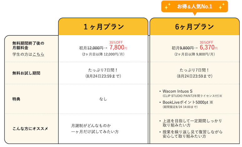 月額12,000円はちょっと趣味でやるには重たいな…という感じ。ただ、本気で絵の仕事をしたい!って場合に専門学校とかと比較すると安いだろうし、本気度次第かなと感じた。自分はどうしても趣味でやってるから…と心がびびって逃げてしまったけど、本気で絵をやりたいって人にはおすすめできるかなと思っています。