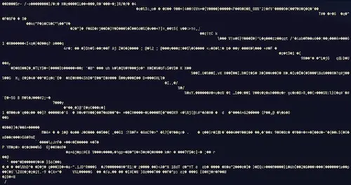ターミナルに直接バイナリを流しても解読不能だが、何かがすごい勢いで流れてくるのは感じられる