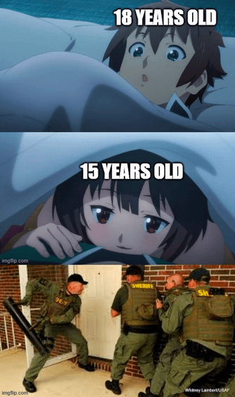 「幼いキャラを性的な目で見るとマジでヤバいぞ!!」みたいなのがネタにすらなっていて、”FBI OPEN UP meme” とか “LOLICE” とかで検索するとたくさん出てくる。